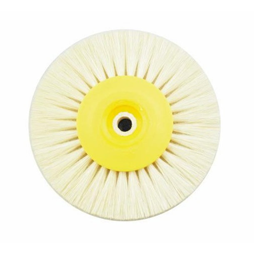 Die große Poliervliesbürste "Yellow Vlies" eignet sich für großflächiges Polieren. Ideal für Kunststoffe am Poliermotor. Die Inneneinlage aus Vlies nimmt feuchtes Bimssteinpulver gut auf.