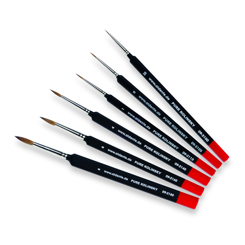 Die ausgesucht dichten Rotmarder-Haare bieten ein ausreichendes Wasserreservoir. Durch die feinen elastischen Pinselspitzen lässt sich die Keramikmasse punktgenau platzieren. Der ergonomische Dreikantgriff liegt sehr gut in der Hand und ermöglicht ein ermüdungsfreies Arbeiten. Ein Abrollen der Pinsel vom Tisch wird dadurch verhindert.