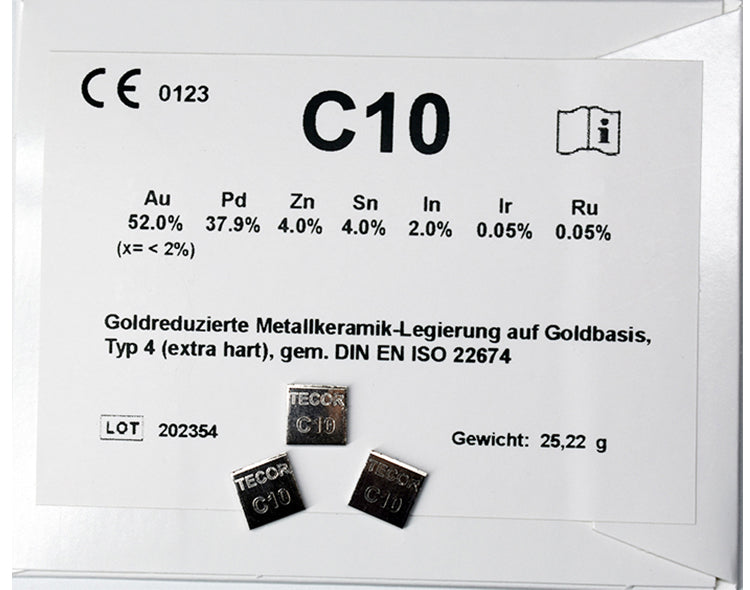 Goldreduzierte Metallkeramik-Legierung auf Goldbasis; Typ 4 (extra hart), gem. DIN EN ISO 22674