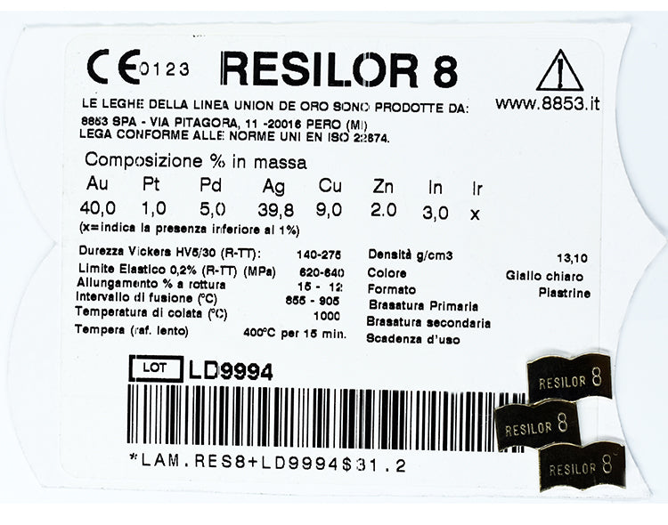| Ag 39.8 | Au 40.0 | Pd 5.0 | Cu 9.0 | In 3.0 | Pt 1.0 | Ir, Zn 2.0 |